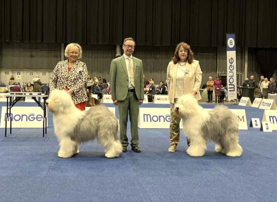 Diesmal war es andersrum: Der Rüde wurde Bester der Rasse und “Tilly” Beste Hündin. Diese Richterin richtet ebenfalls die Gruppe 1 und machte den Hund 2. der Gruppe 1. Das ist immer ganz schlecht für die nächsten 2 Tage. Weil die anderen Richter sich orientieren, was im Ehrenring passiert und wenn sie keine Ahnung haben von der Rasse, gehen sie immer auf Nummer sicher und lassen denselben Hund wieder BOB gewinnen. Glauben Sie mir, nach 53 Jahren im Ausstellungsring weiss ich die ins and outs vom Geschäft.