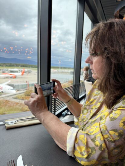 Wir haben ein bisschen Smalltalk mit netten Leuten, die wir kannten und sind dann rüber ins IBIS Hotel. Martina hat mich zum Flughafen begleitet und dort haben wir es uns richtig gut gehen lassen und mit Aussicht auf die Start -und Landebahn herrlich eine verspätetes Mittagessen verspeist. Frühstück war ja leider wieder furchtbar und 2 hart gekochte Eier haben uns bis 16 Uhr gerettet.