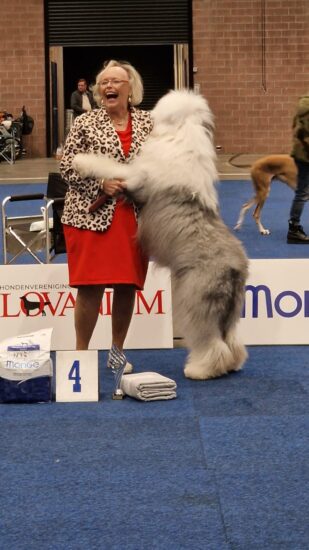 Am Sonntag richtet der Franzose Herr Kramer die Rasse und die Gruppe. Ich kann in die Zukunft schauen und wusste, dass der Rüde aus Frankreich BOB gewinnen würde und die Gruppe 1 bei ihm gewinnt. Stellen Sie sich vor, ich KANN IN DIE ZUKUNFT schauen!!! Genau so war es ! Der Rüde BOB und ” Tilly” BOS