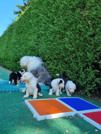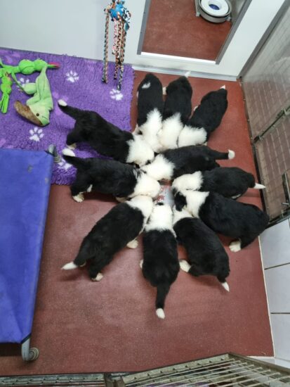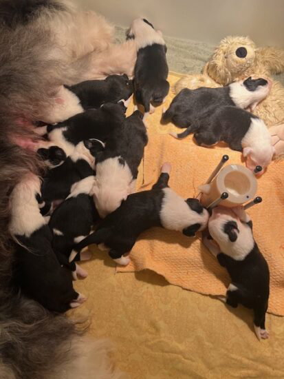 Unsere 11 Welpen halten uns ganz schön auf trapp. Ocean ist eine liebe Mammi und die kleinen entwickeln sich prächtig. Mit 2,5 Wochen sind sie in den Kindergarten im Hundehaus umgezogen. Die Wurfkiste war einfach zu klein geworden für unser Fussballteam.